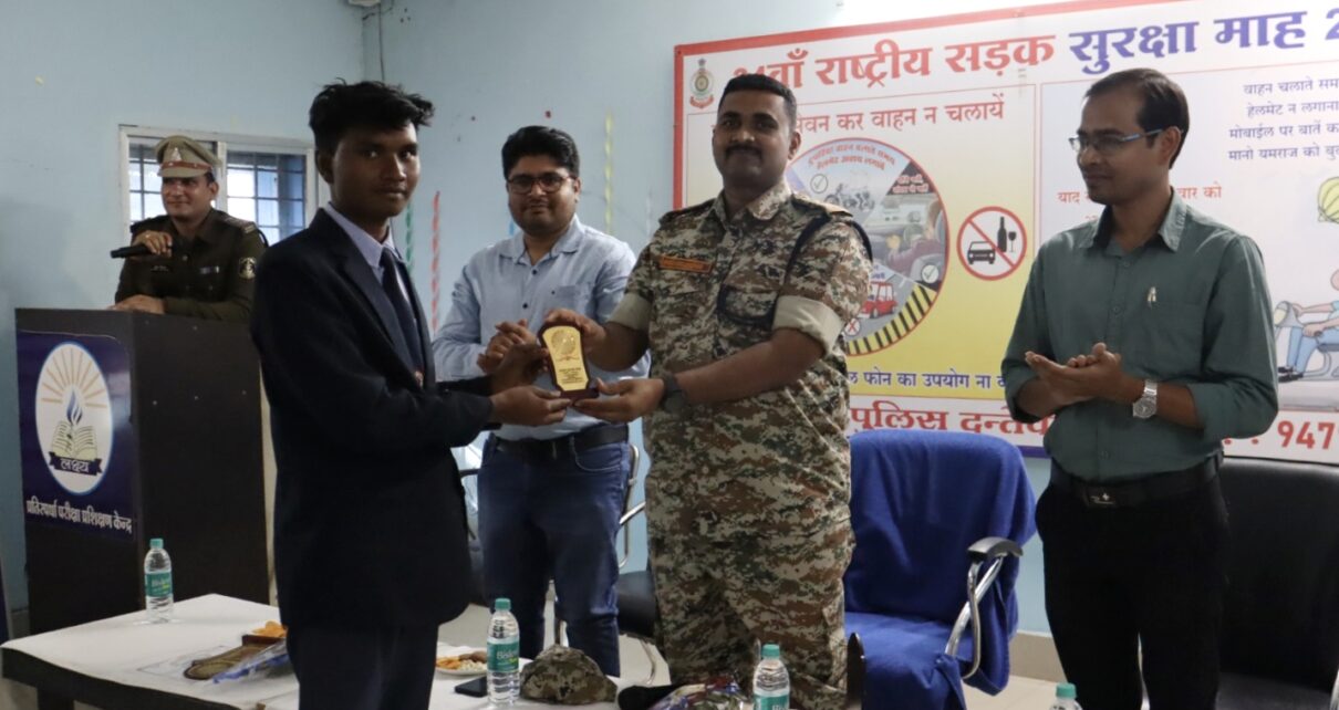 यातायात पुलिस दन्तेवाड़ा के द्वारा आम जनता के बीच सड़क सुरक्षा को बढ़ावा देने के उद्देश्य से और स्कूली बच्चों को यातायात के प्रति जागरूक करने के लिये जिले भर के स्थानीय शासकीय विद्यालयो में जागरूकता कार्यक्रम आयोजित कर सड़क सुरक्षा के प्रति जागरूक करने का कार्य किया गया । समापन समारोह में आपात कालिन स्थिति में तत्काल ईलाज की सुविधा देने वाले डाॅक्टर टिकेन्द्र देवांगन का भी सम्मान किया गया। मुख्य अतिथि ने व्यवस्थित यातायात के लिये जागरूक होने की आवश्यकता जताई। इसके पश्चात् सड़क सुरक्षा संबंधित प्रतिस्पर्धा में भाग लेने वाले विद्यार्थियों को मुख्य अतिथि द्वारा पुरस्कार वितरण किया गया।