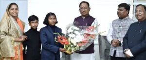 रायपुर। मुख्यमंत्री विष्णु देव साय से आज राष्ट्रीय जूडो खिलाड़ी हेमबती नाग ने सौजन्य मुलाकात की। छत्तीसगढ़ के कोंडागांव की बिटिया हेमबती को उनकी उपलब्धियों के लिए राष्ट्रपति श्रीमती द्रौपदी मुर्मु के हाथों “प्रधानमंत्री राष्ट्रीय बाल पुरस्कार 2024” से सम्मानित किया गया है।